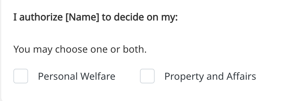 You are the “Donor”. You may grant your Donee(s) powers to make personal welfare and/or property and affairs decisions on your behalf when you lack mental capacity, or when they have reason to believe1 you lack such capacity.