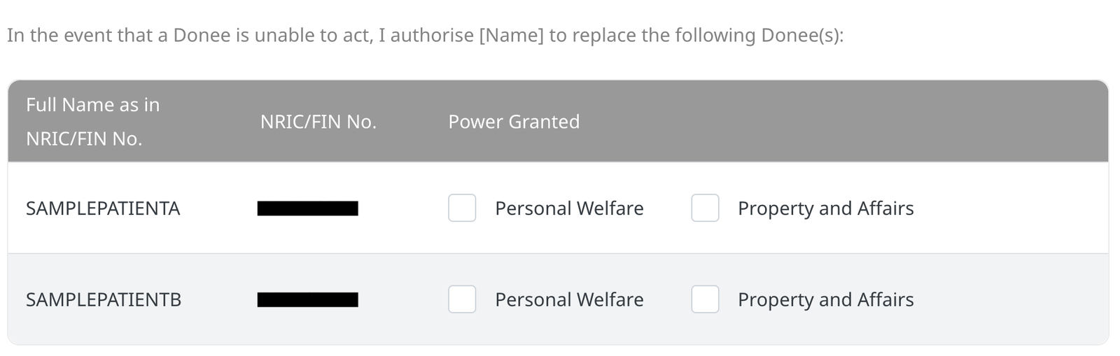 - Please have your Donee(s)’ full name, NRIC/FIN No., mobile number and email address ready.